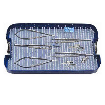 顯微外科手術器械包 HC-B801-1詳細信息: 顯微鑷15cm 0.3mm 直2把, 顯微持針鉗14cm 直1把,顯微剪14cm直1把,顯微止血夾大2只,顯微止血夾小2只,平頭沖洗針1只。配帶硅膠器...