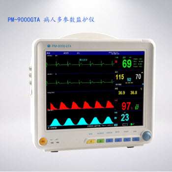 PM-9000GTA 病人多參數監護儀產品性能:1.全新高精度模塊,測量參數精度高、質量可靠,性能穩定。2.高亮度高分辨12.1英寸彩色TFT液晶顯示。3.全導聯七通道同步顯示心電。4.多種顯示界面:...